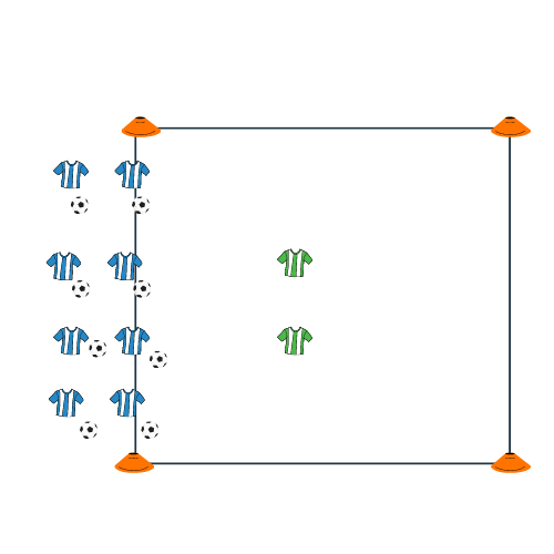 Introduce ball mastery skills/turns in the central area.
